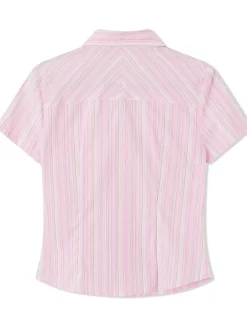 Women’s Striped Short Sleeve Blouse Fitted Collared Button-Up Shirts Casual Summer Top Streetwear